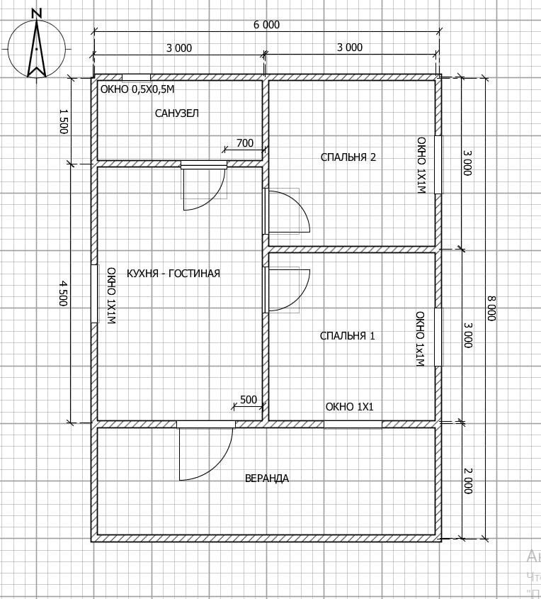Дом 6×8 с верандой 2м